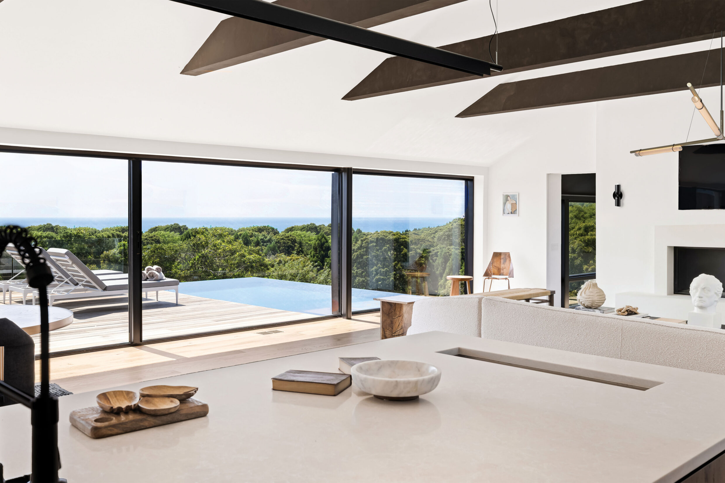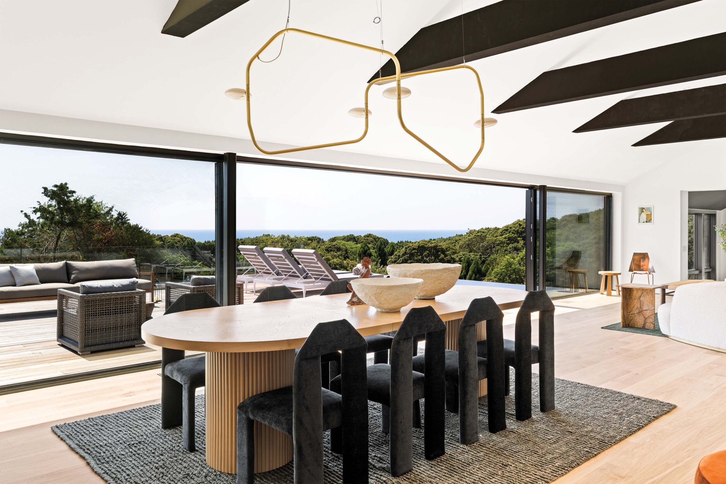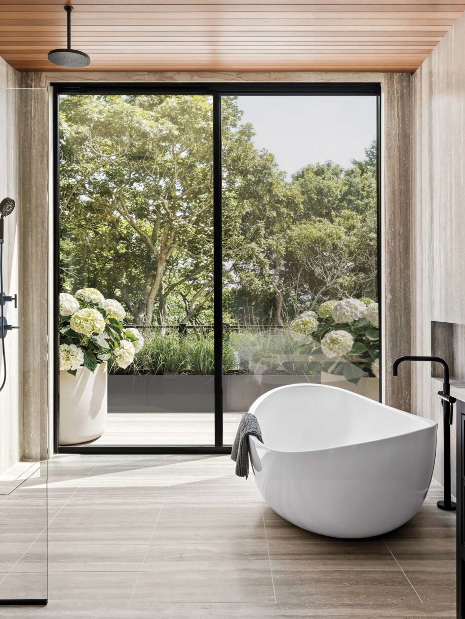 The interior of 12 Tara Road is designed to bring the ocean indoors, with expansive water views visible from nearly every room.