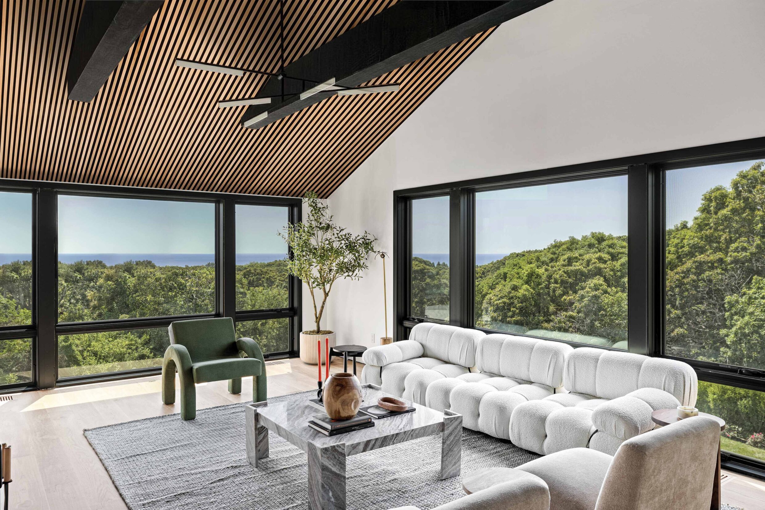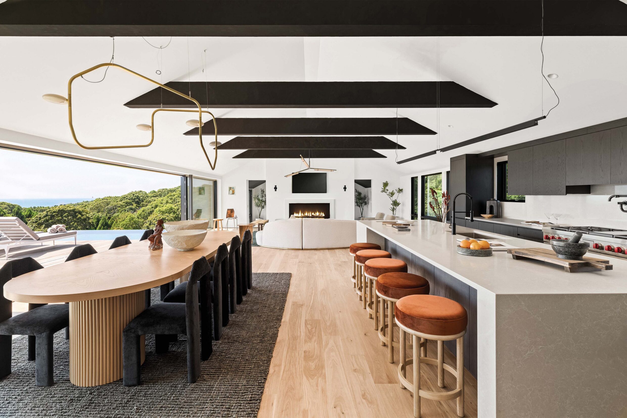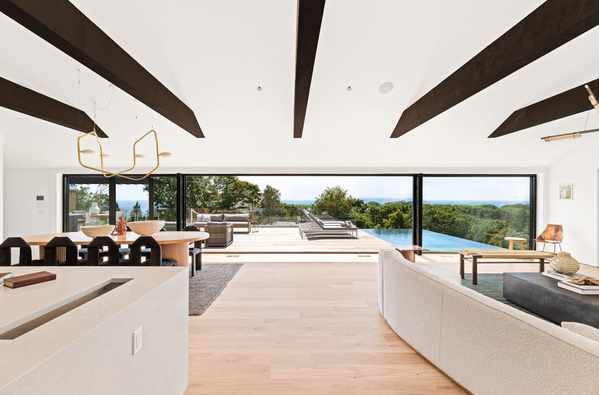 The interior of 12 Tara Road is designed to bring the ocean indoors, with expansive water views visible from nearly every room.