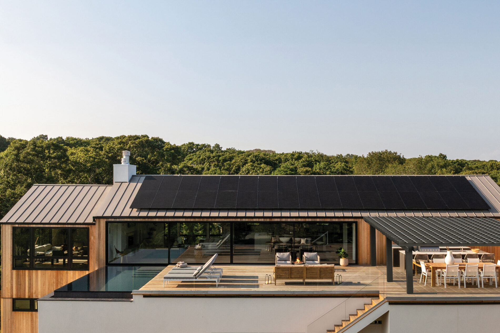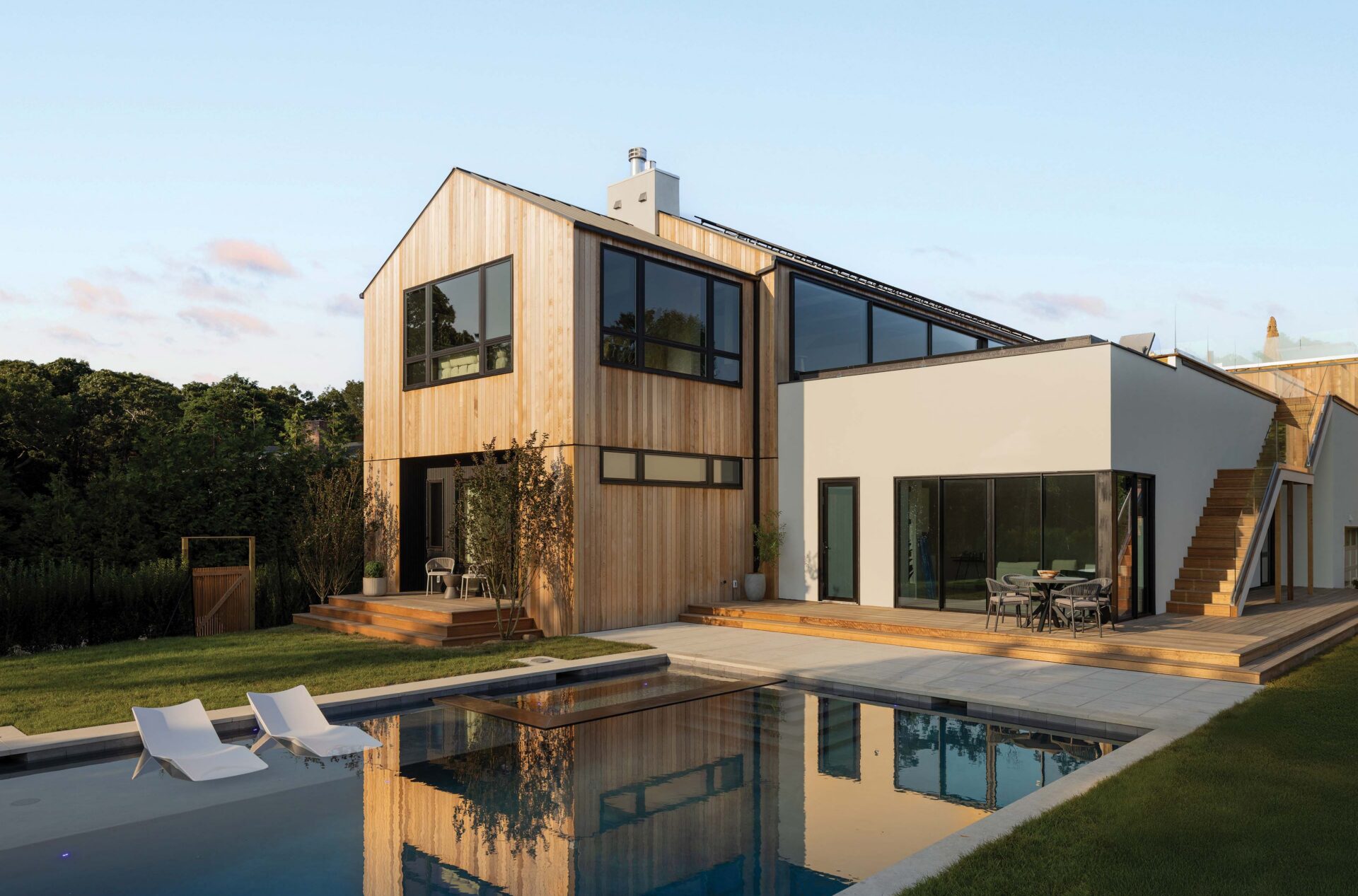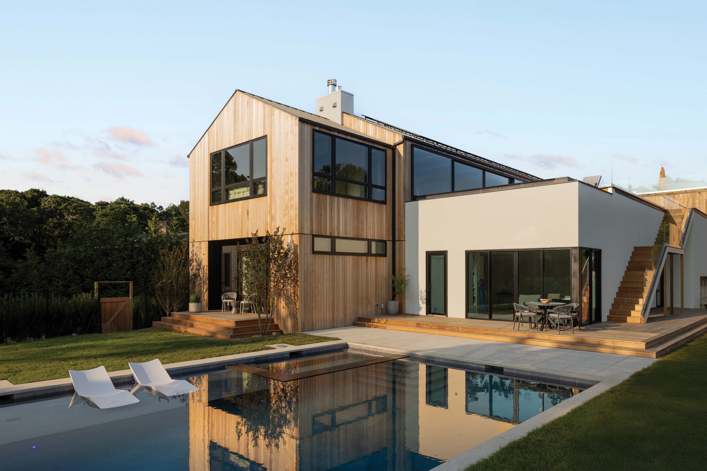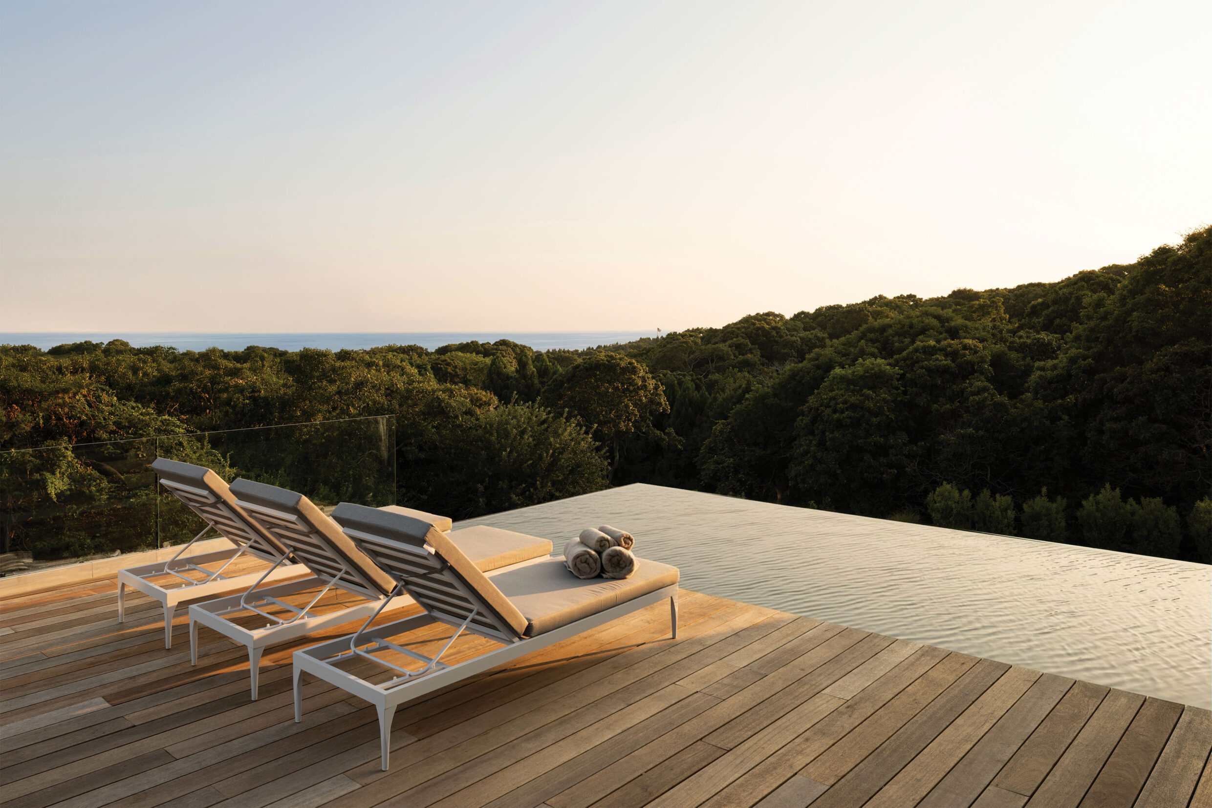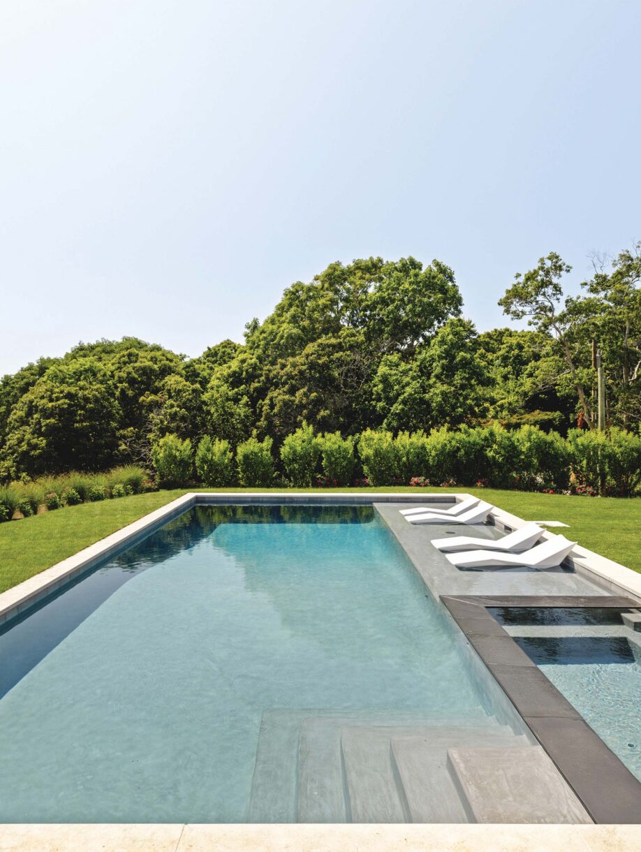 The exterior of 12 Tara Road is designed to embrace the ocean while offering the finest amenities for outdoor living. The custom-designed oceanfront gunite pool and integrated spa with chaise wet ledge create a serene oasis, while multi-level mahogany decking provides multiple spaces to enjoy the outdoors.