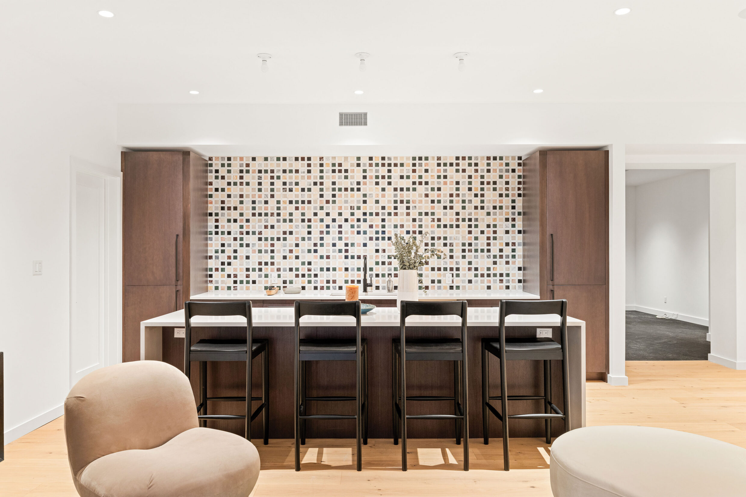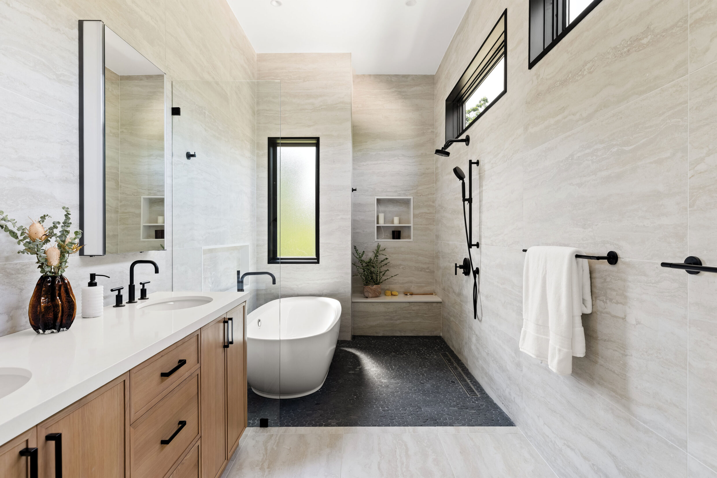 The primary suite is a private sanctuary, featuring a study, private terrace, and an indulgent primary bathroom with a soaking tub and dual vanities.