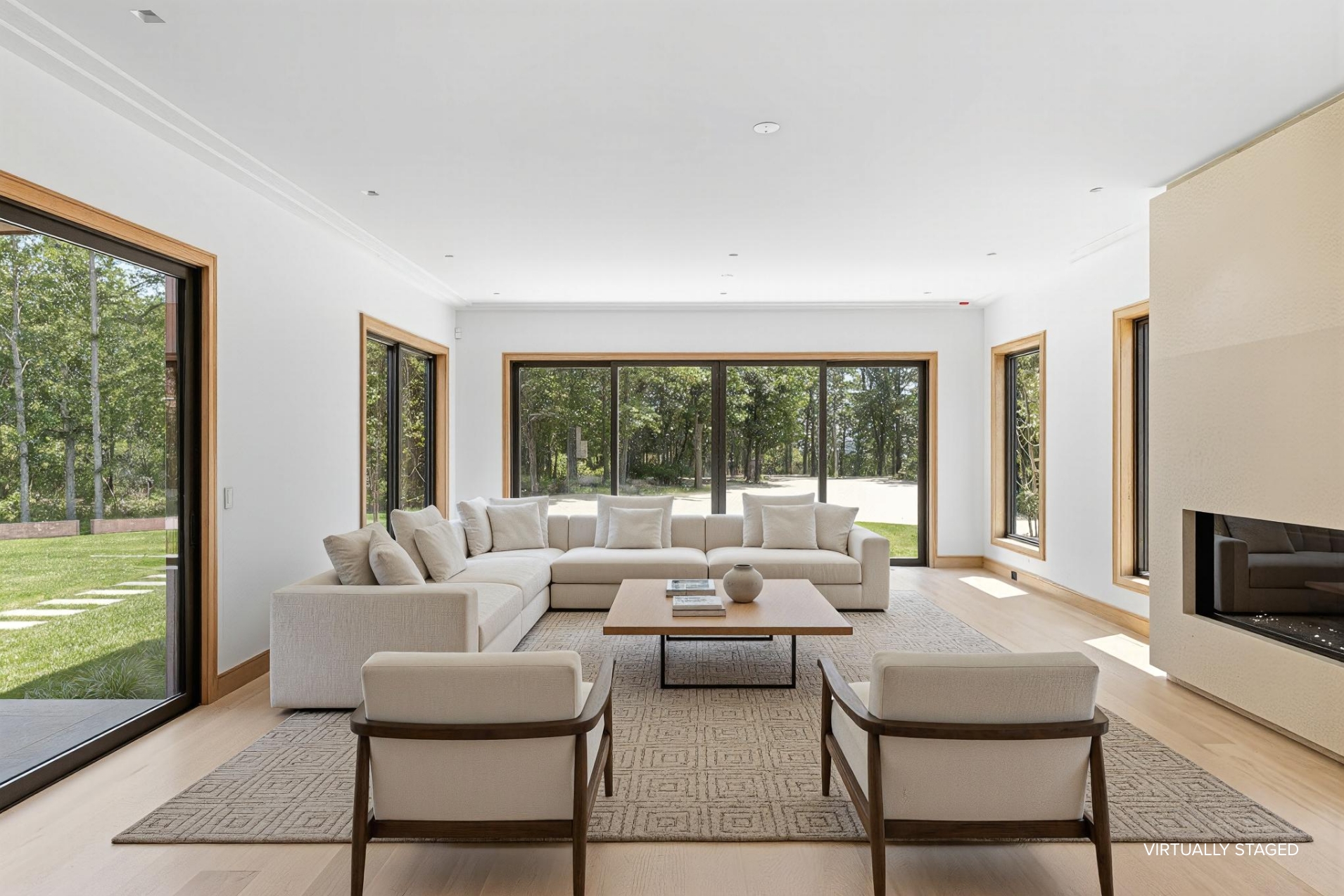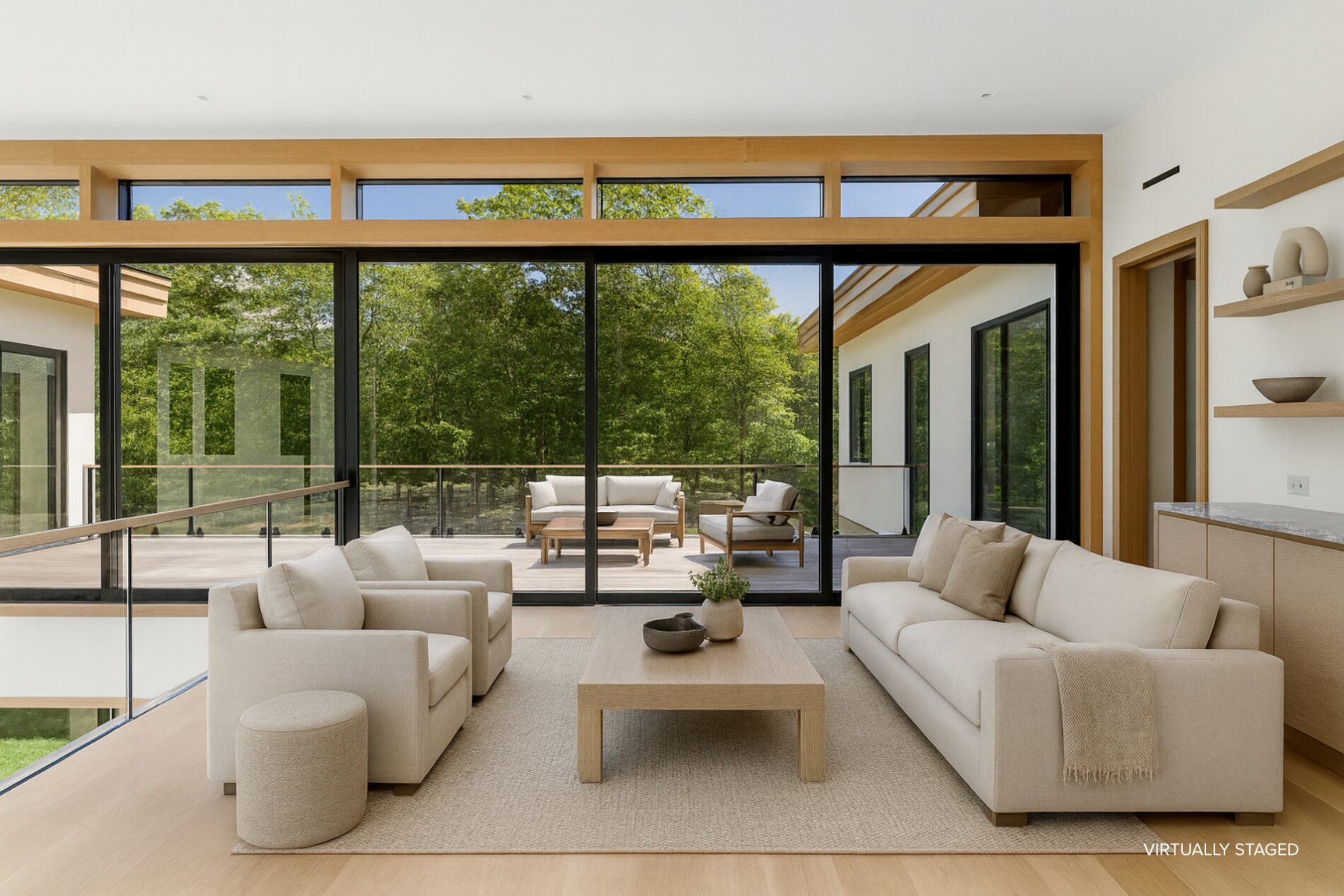 Positioned between Fresh Pond and Sag Harbor Bay, the property offers water views and a sense of seclusion while remaining less than a mile from the Village of Sag Harbor. Set within a quiet North Haven neighborhood, it combines privacy, proximity, and access to local amenities, dining, marinas, and bayfront recreation.