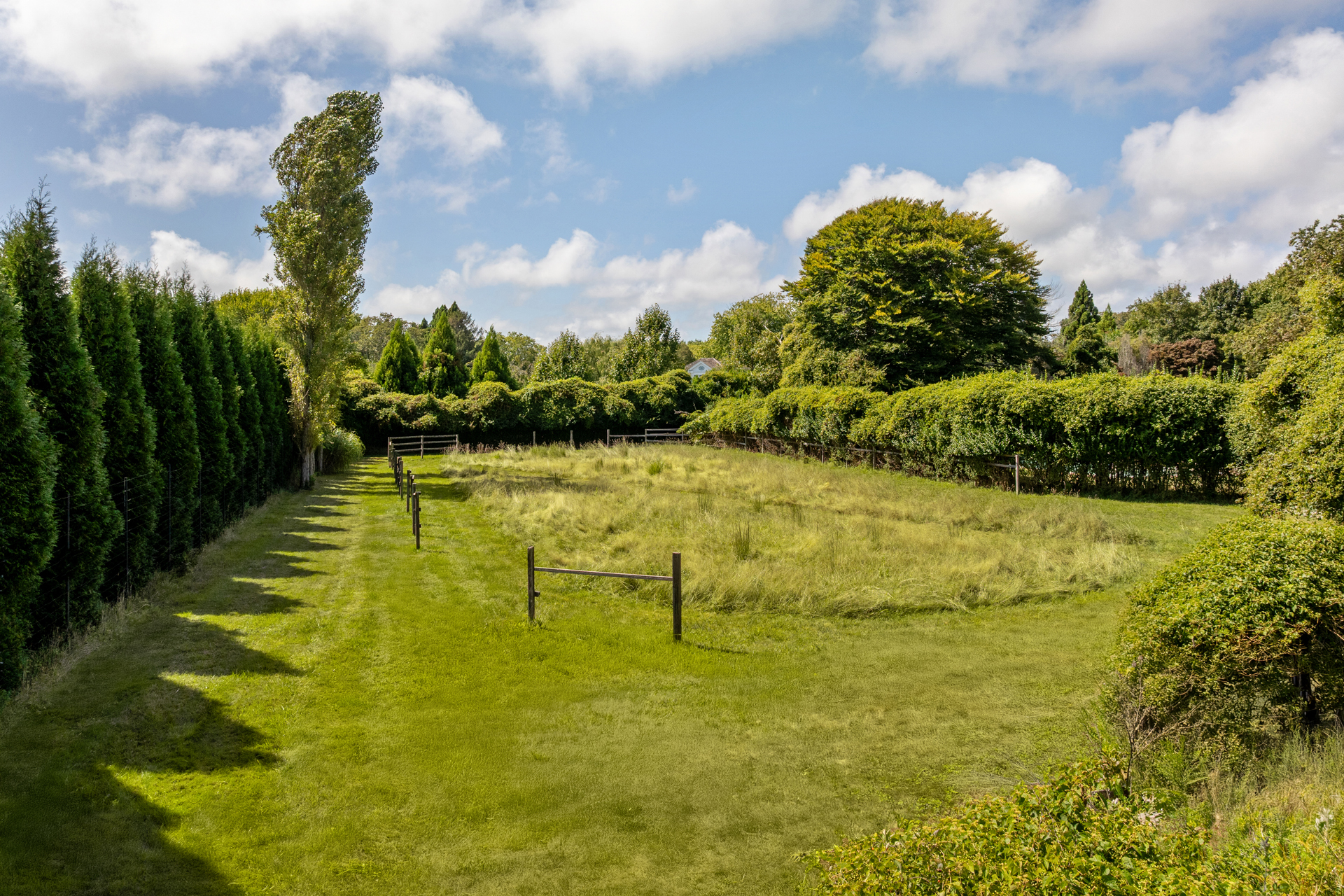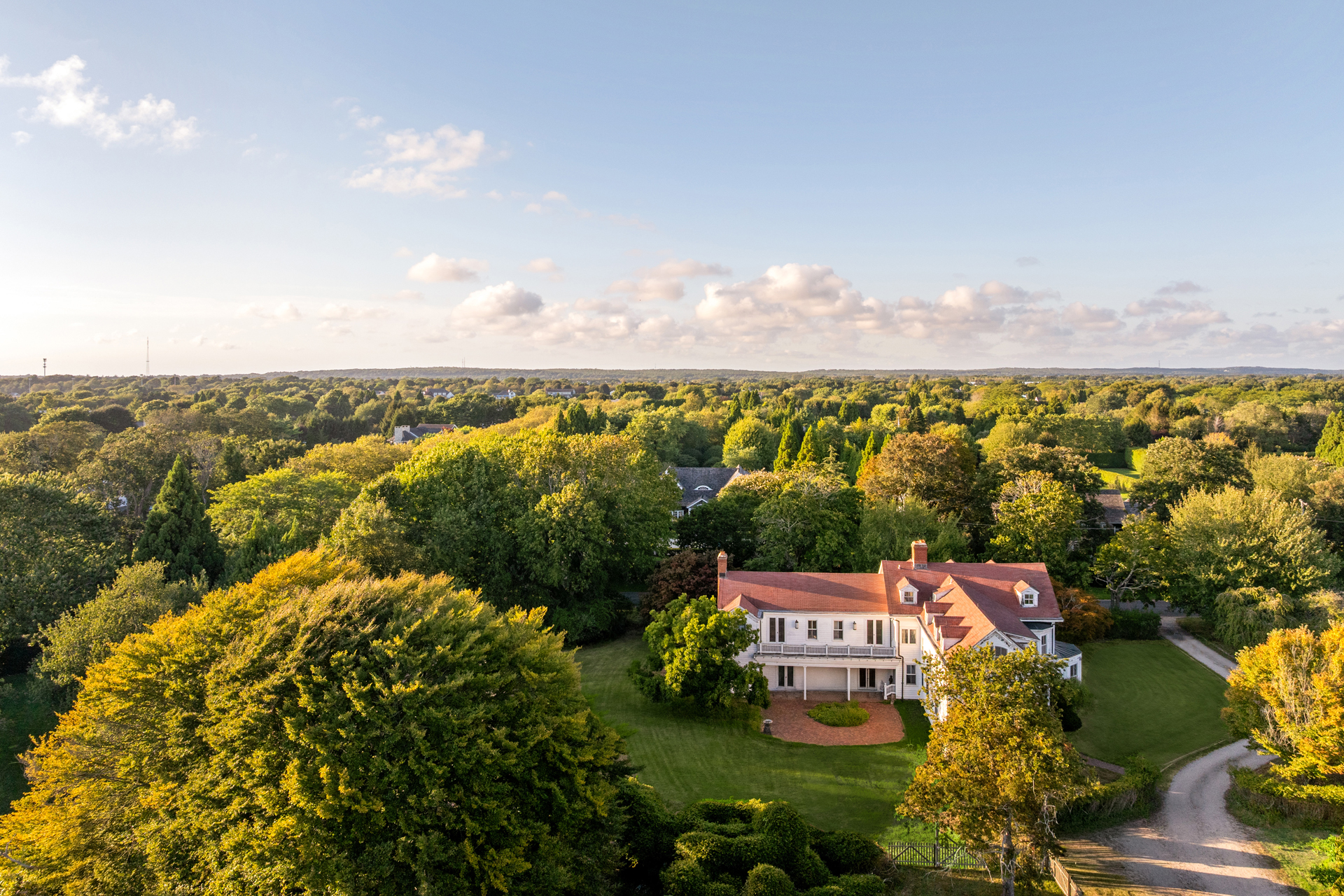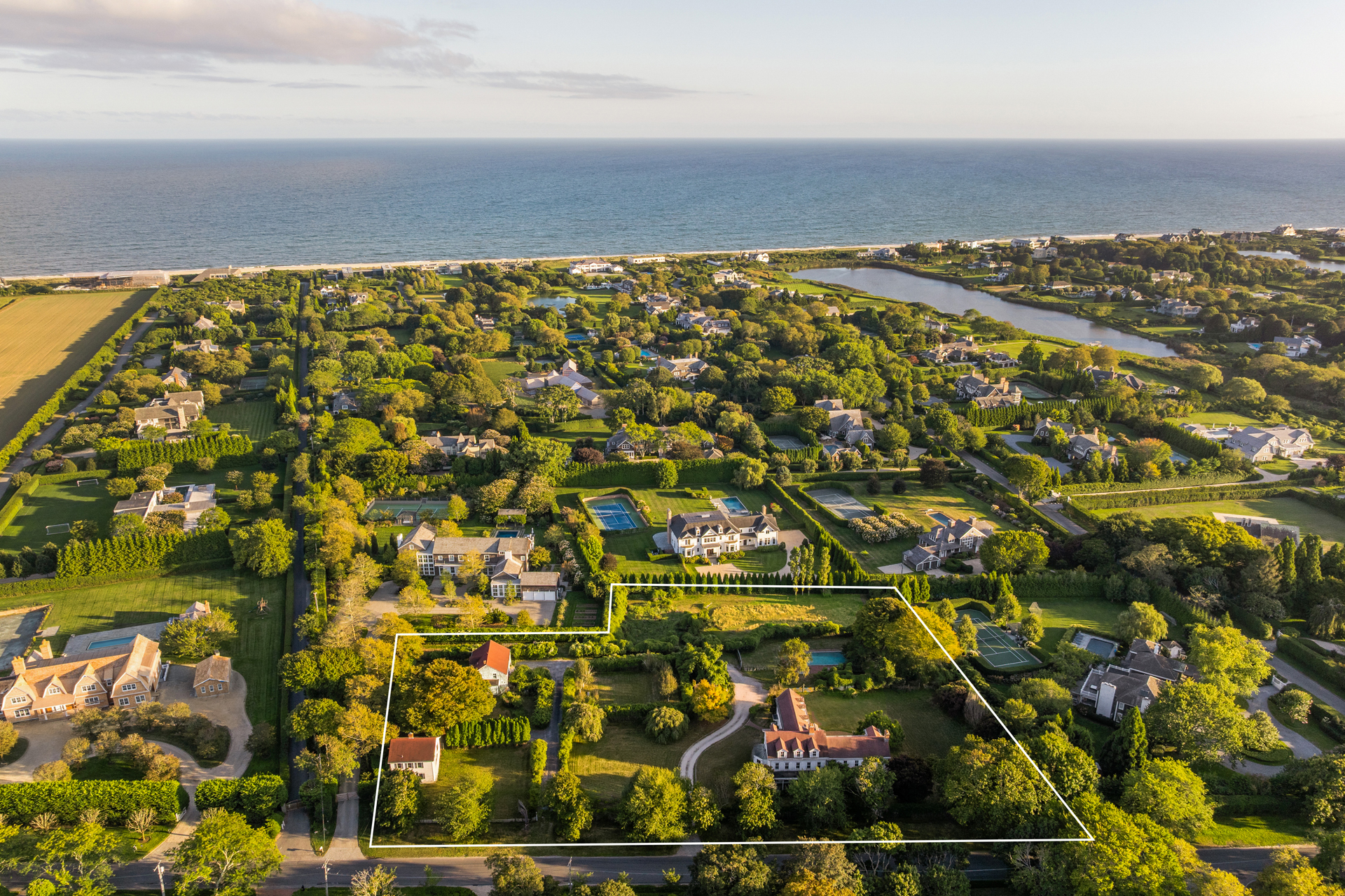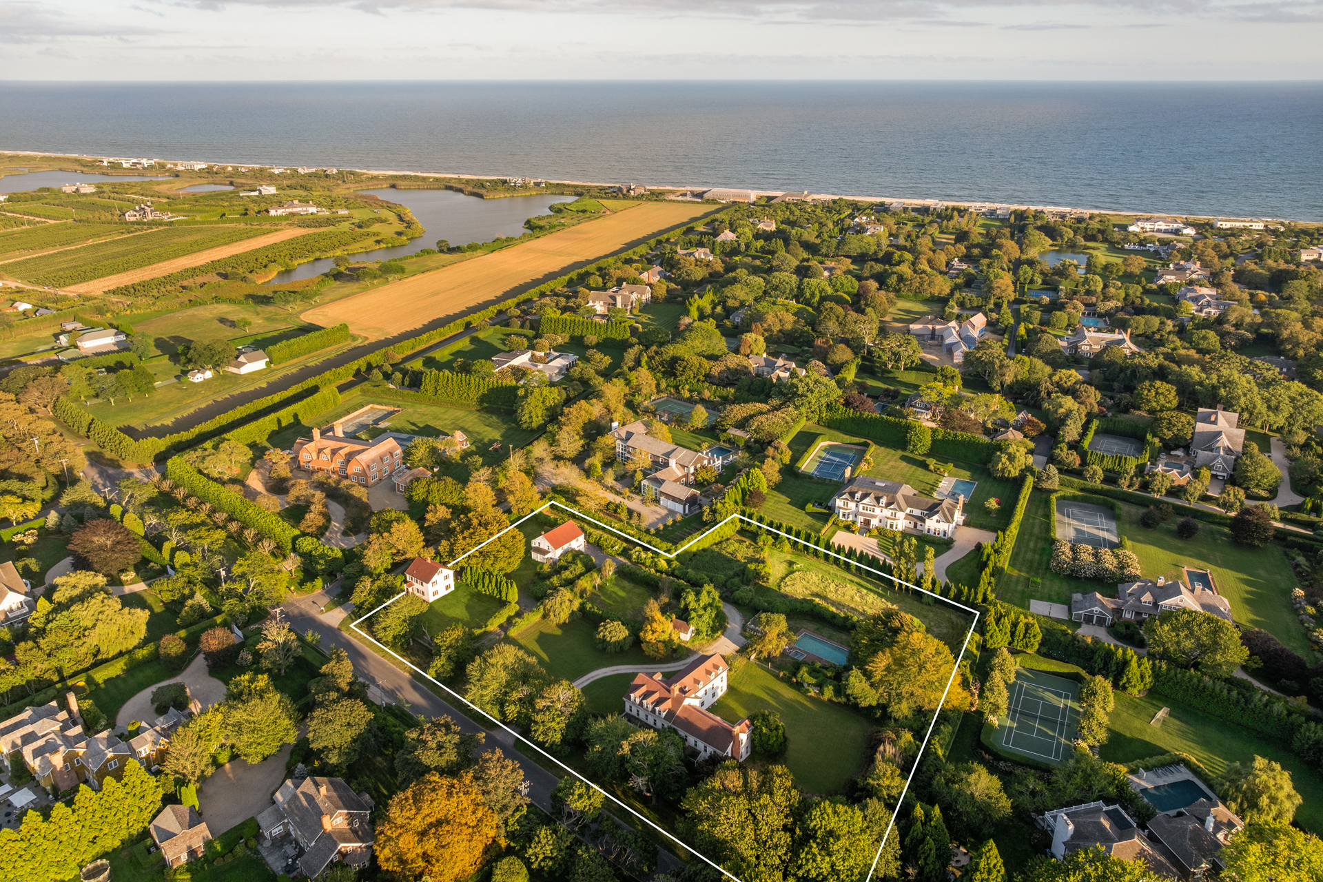 Moments from pristine ocean beaches and Southampton Village, the estate sits south of the highway amid protected farmlands. Expansive lawns, specimen trees, and tall privet hedges provide privacy and a bucolic backdrop while keeping the village and ocean within easy reach.