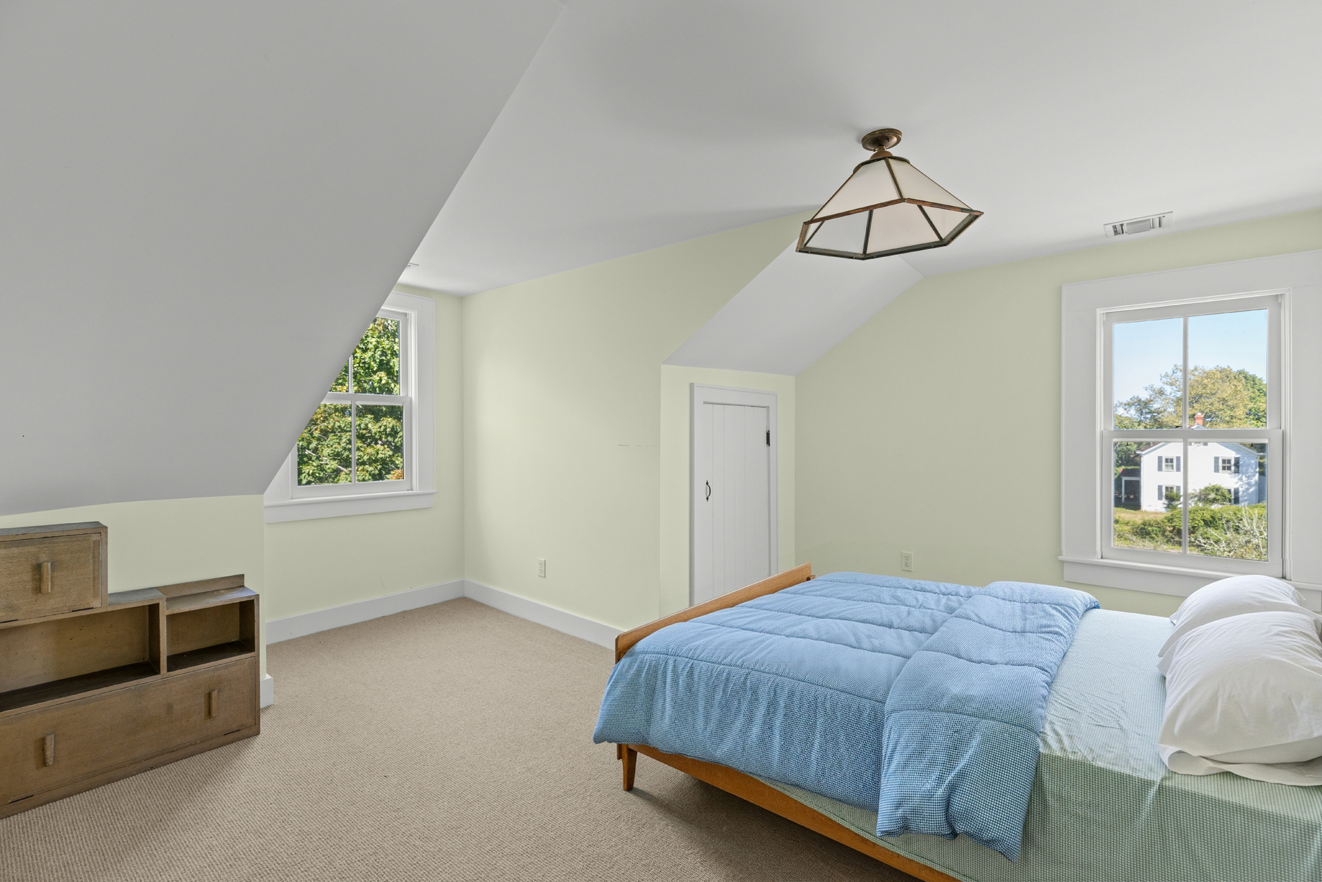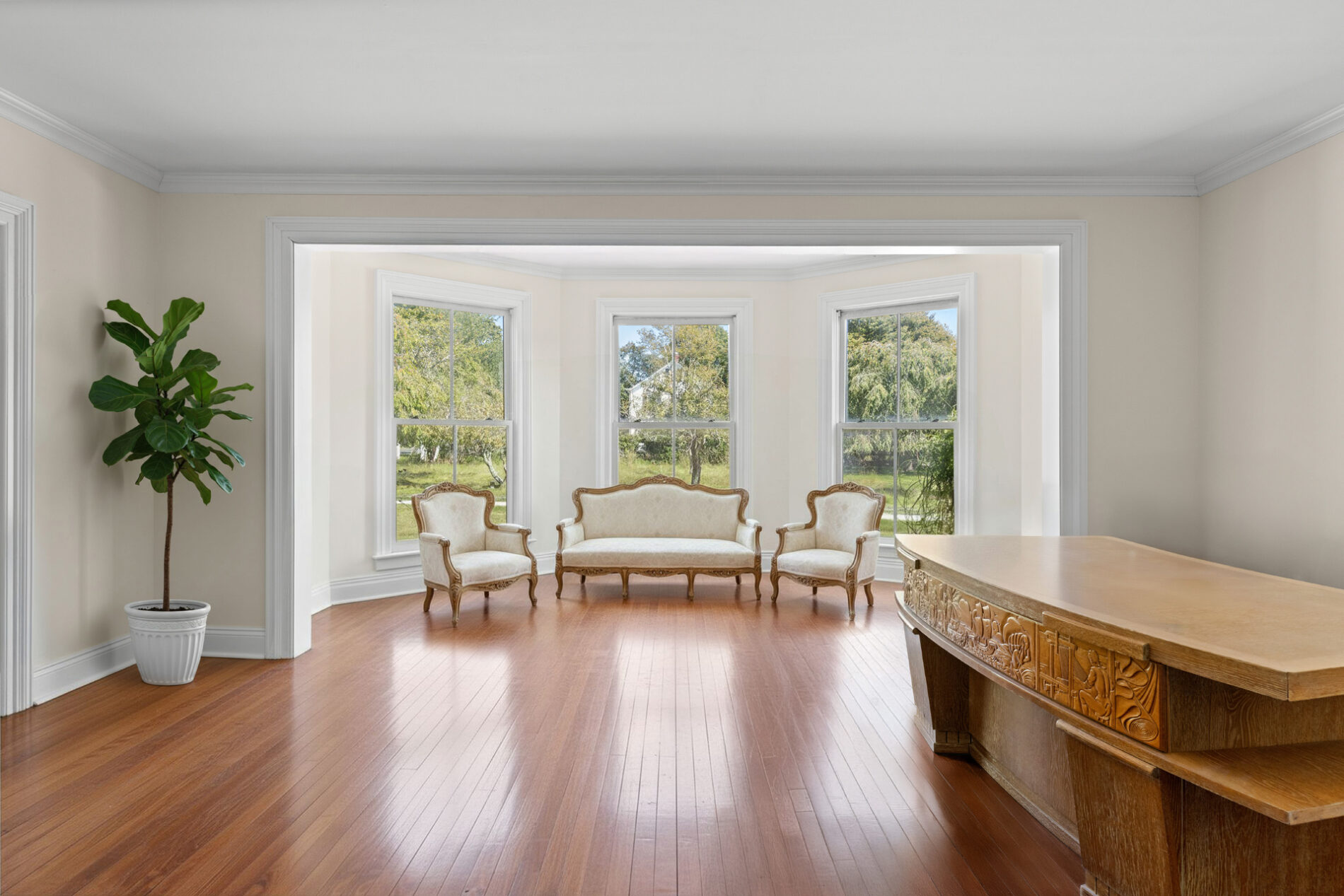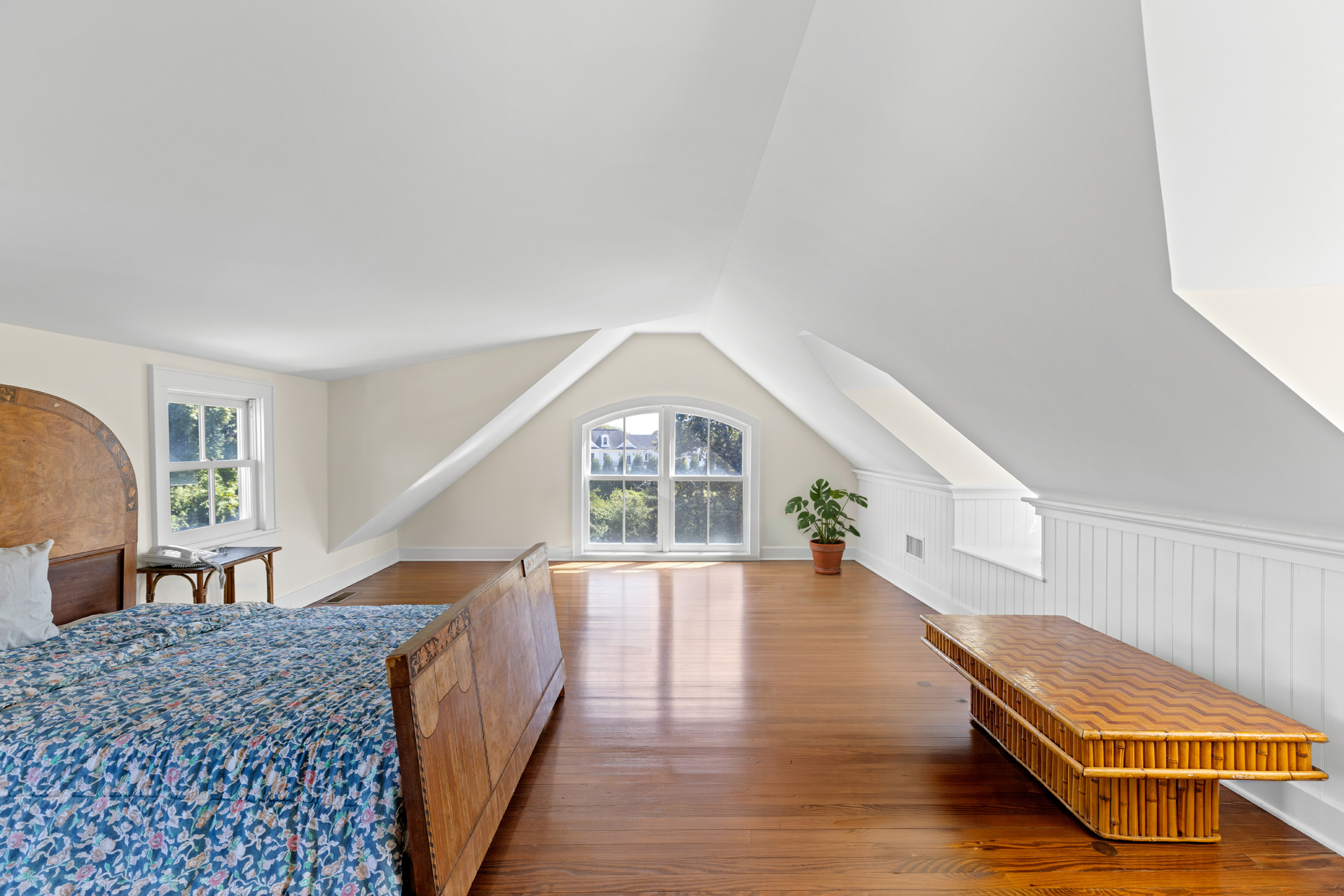 Known as Red Top Farm, this property was built around 1895 for the Thompson family and originally served as a working farm with several outbuildings. Its distinctive red roof, visible from a distance, gave the home its enduring name. Architecturally, the residence is a 2.5-story, 5-Bay clapboard farmhouse with gabled rooflines, an Italianate overhang, and a broad front porch. Historical maps reference earlier ownership by D. Burnett in 1897, before the house passed to Mrs. Wagner of the Southampton Summer Colony and later to Mrs. Philip B. Thompson in 1916.