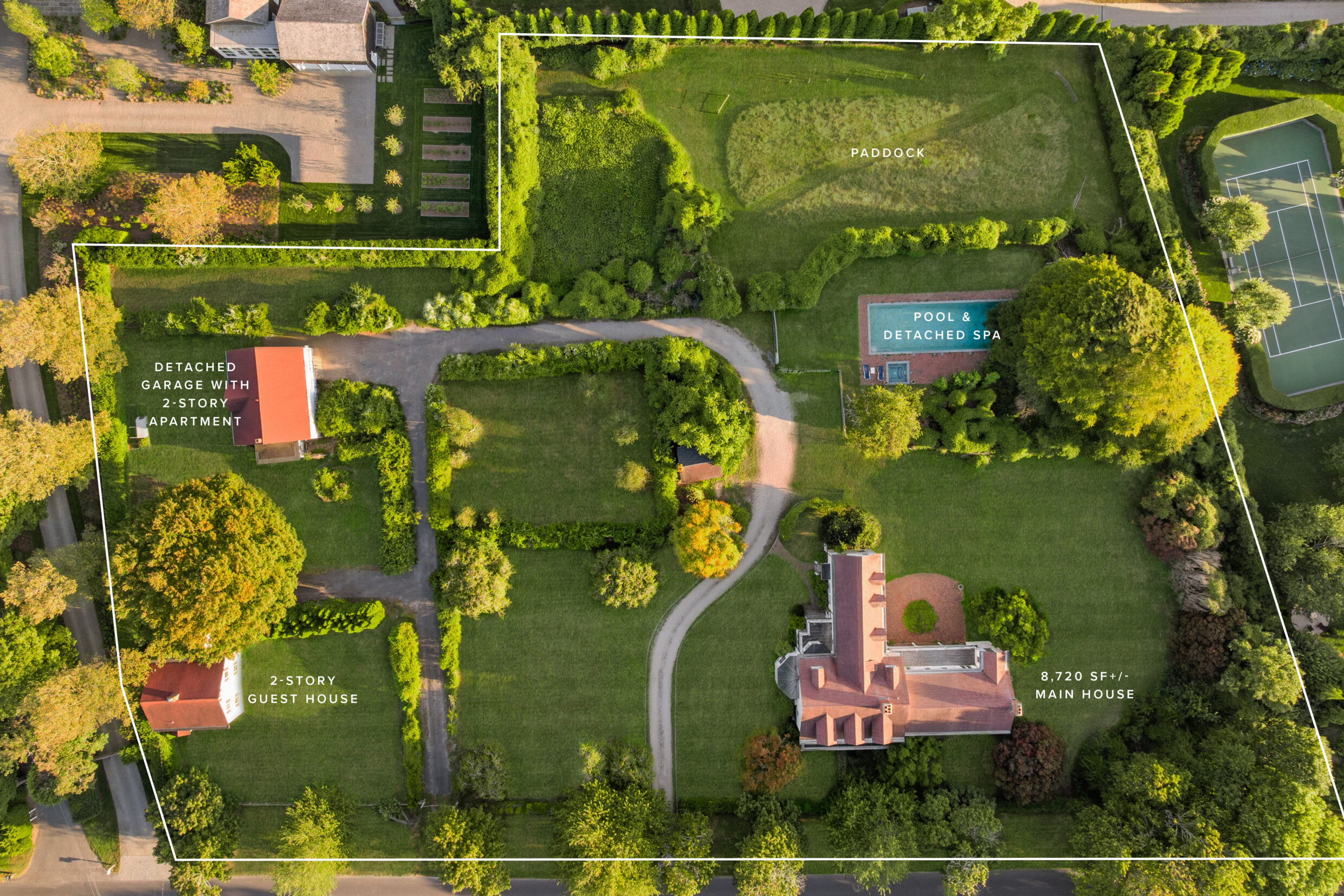 bathroomsBuilt in 1895 and thoughtfully renovated in 1997 by architect John David Rose, Red Top Farm is a 3-story clapboard farmhouse that embodies Southampton’s rich heritage while offering 8,720 SF+/- of modern living. Set on 2.9 acres+/-, the estate comprises 10 bedrooms, 7 full and 2 half bathrooms across the main residence, complemented by a 2-story guest house and a detached garage with an apartment. A pool, spa, and manicured grounds complete this rare Hamptons compound.