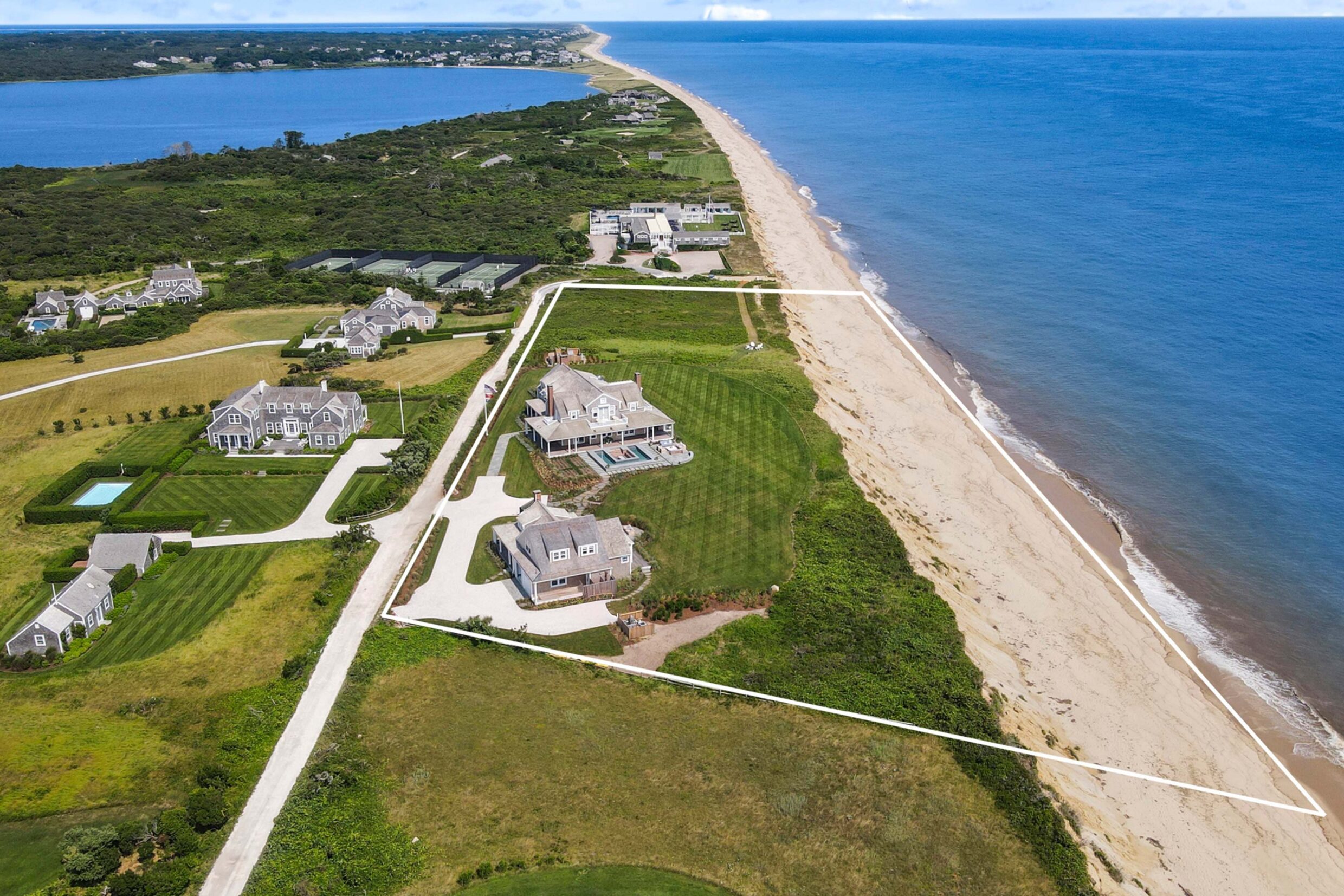 bathroomsPerched high above the Atlantic on Nantucket’s storied Sconset Bluff, 37 Sankaty Head Road is a rare offering of scale, privacy, and panoramic coastal beauty. Originally designed by Lyman Perry in 2006 and masterfully reimagined in 2024 by BPC Architecture, with construction by Clarke Brothers, this extraordinary turnkey compound seamlessly blends timeless island architecture with refined modern living. Set on approximately 6.5 acres+/-, the estate unfolds across two structures totaling 10,041 SF+/-, including a 8,300 SF+/- main residence and a 1,741 SF+/- finished guest house with an attached two-car garage. Across the compound lie a total of 8 bedrooms and 8 full and 2 half bathrooms, thoughtfully designed to accommodate both grand-scale entertaining and intimate coastal retreat, along with a private path leading directly to the beach below.