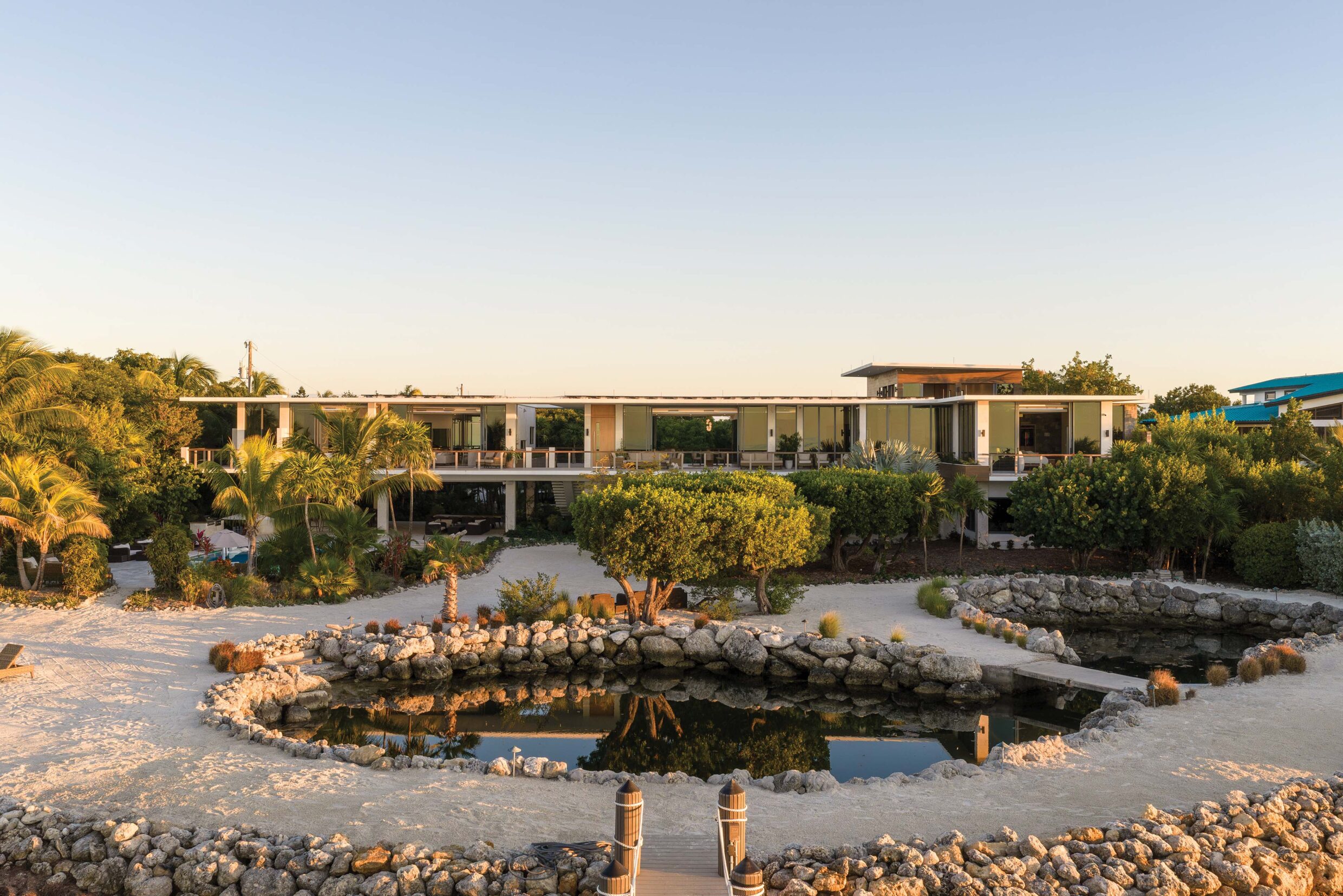 Morton Street occupies one of Marathon’s most discreet waterfront corridors, known for its tranquility and exceptional boating. The estate sits at the end of a 500’+/- private drive, surrounded by native landscape, curated dunes, and the sound of open water meeting the shore. Natural tidal ponds stocked with fish and lobster animate the property’s ecology, while the elevated building platform delivers storm protection and uninterrupted views from nearly every room.