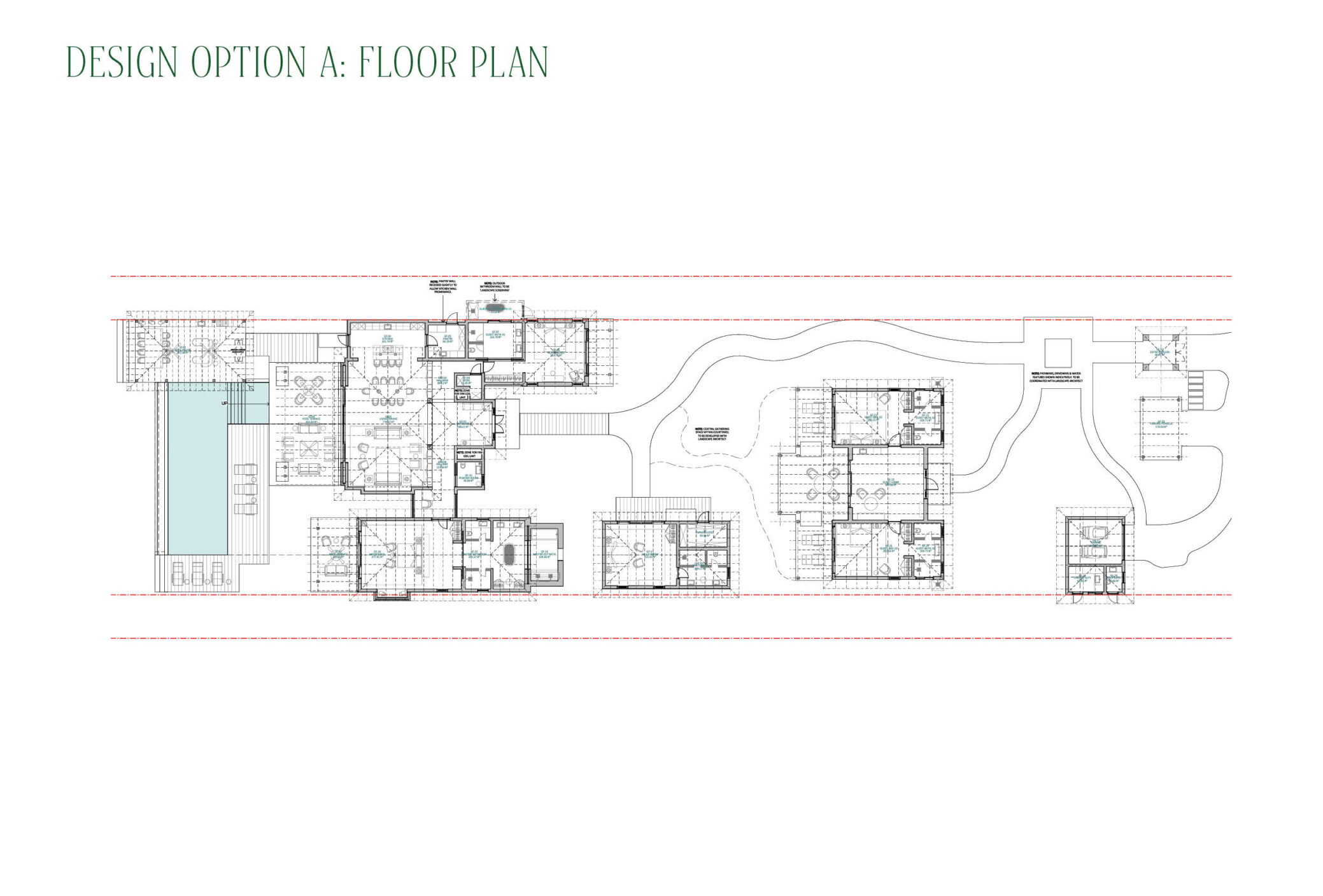The exterior is defined by a series of pavilion-style structures set among landscaped courtyards, creating a layered progression from arrival to water. An infinity pool with sun deck and pool house pavilion anchor the ocean-facing edge of the property. Private ipe timber pathways extend from the residence’s 100’ +/- of ocean frontage to the pool terrace and primary suite, reinforcing a seamless dialogue between architecture and sea.