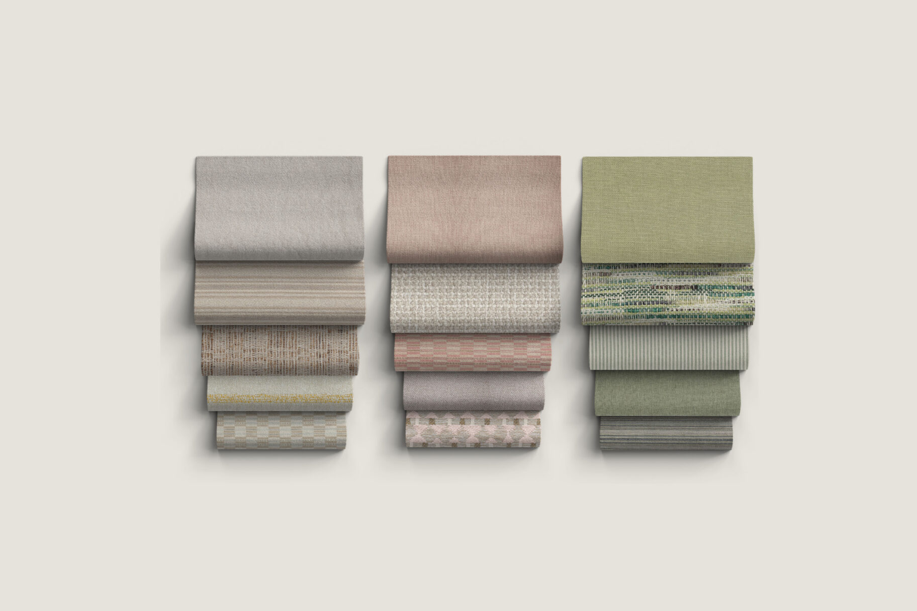 Interiors by Ward & Co. emphasize material integrity, texture, and restraint. Curated Neutral, Rose, and Green soft-finish palettes are available for selection, each layered within a consistent framework of fixed natural materials.